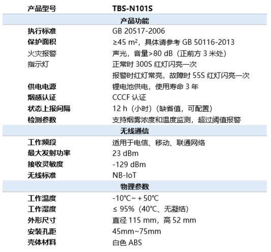 为进一步满足市场多样化需求,优化消防解决方案,俄罗斯尊享会科技NB-IoT新品烟感TBS-N101S正式投放市场。 TBS-N101S是独立式无线感烟报警器,基于NB-IoT标准,具备远距离无线通信能力,无需布线、即买即用;可同时检测烟雾浓度和温度,提升检测准确率;采用新方案设计,有效确保产品电池使用寿命更长;支持声光、电话、短信、平台等多种报警方式,有效预防火灾发生。